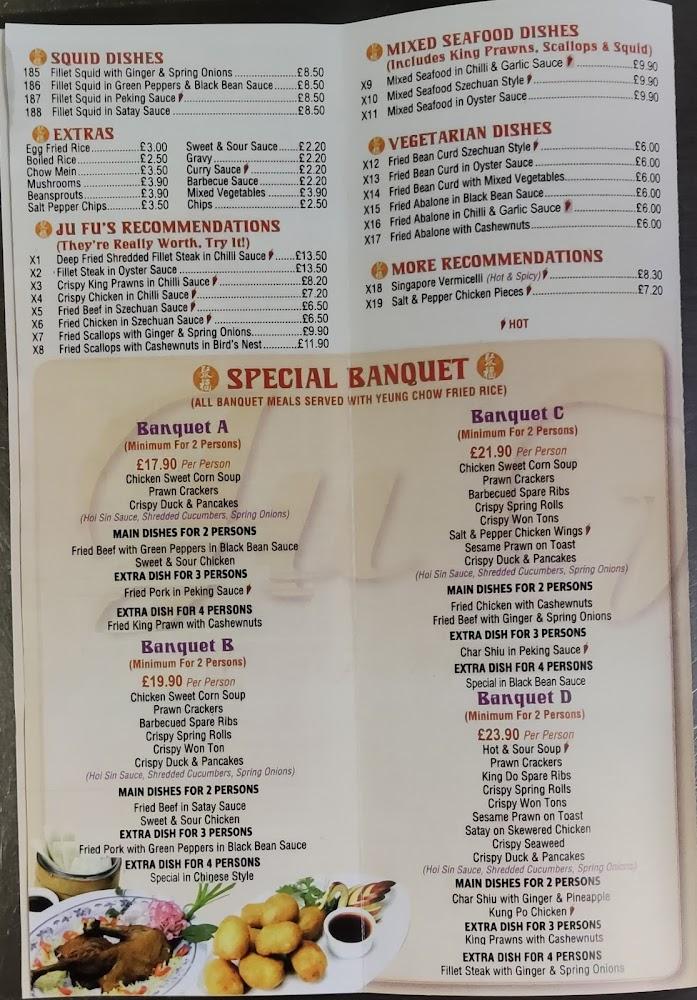 Ju Fu is located in the heart of Liverpool, specifically at 15 Dover Rd, postcode L31 5JB. The restaurant is easily accessible and welcomes patrons for both dine-in and takeaway options. The cozy setting creates an inviting atmosphere for families, friends, and solo diners alike. This restaurant captures the essence of casual dining, offering wheelchair-accessible seating and facilities. Nearby, you’ll find convenient free street parking, making it easy to drop by at any time. Ju Fu's open hours span from Monday to Sunday, ensuring that cravings for Chinese cuisine can be satisfied any day of the week. The restaurant fosters a community spirit that draws regulars and newcomers, all eager to indulge in flavorful dishes. Its ambiance is both casual and cozy, making it a perfect setting for dinner or an after-work quick bite.